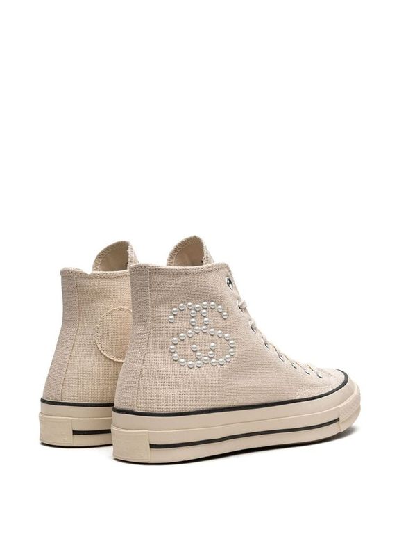 Представляем Converse x Stüssy Chuck 70 High Fossil Sneakers — идеальное сочетание классики и современного стиля. Эти кеды воплощают в себе легендарный дизайн Chuck Taylor с обновлёнными элементами от культового бренда Stussy. Выполненные в утонченном оттенке Fossil Pearl, они станут ярким акцентом вашего гардероба. Высококачественные материалы и продуманная конструкция обеспечивают комфорт и долговечность, а универсальный силуэт идеально подходит как для повседневной носки, так и для особых случаев. Станьте обладателем уникальной пары, которая подчеркнет вашу индивидуальность и чувство стиля. Не упустите шанс приобрести эту эксклюзивную модель, которая станет жемчужиной вашей коллекции обуви.